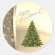 Pegatina Redonda Árbol de Navidad moderno, oro falso