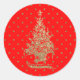 Árbol de navidad purpurina rojo Pegatina redondo clásico.