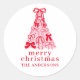 Pegatina Redonda Árbol de Navidad Rojo Rosado y Moderno
