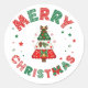 Pegatina Redonda Árbol de Navidad Rojo y Verde Chic Fiesta Navideña