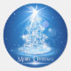 Pegatina Redonda Árbol de Navidad y luz sobre fondo azul