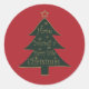 Pegatina Redonda Árbol de pino adornado con Feliz Navidad