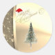 Pegatina Redonda Árbol de pinos de moda, Santa Hat, oro de imitació