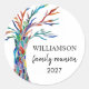 Este pegatina de reunión familiar presenta un árbol familiar en los colores del arcoiris. Personalizar con tu apellido y año. Original Mosaico © Michele Davies.