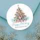 Pegatina Redonda Árbol navideño de vacaciones felices