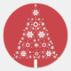 Pegatina Redonda Árbol navideño estrella en fondo rojo