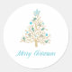 Un divertido diseño de vacaciones para los bañistas. Un hermoso árbol de Navidad dorado decorado con conchas y un árbol de estrellas con el saludo navideño Feliz Navidad. Una idea divertida de regalo para Navidades, cumpleaños, aniversarios, Navidades en julio o cualquier ocasión de regalo. Una gran manera de decirle a alguien que sus Navidades le regalan es unas vacaciones en la playa.