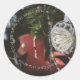 Pegatina Redonda Árbol oscuro retro de Navidad