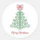 Pegatinas navideñas modernas con un simple y lindo doodle de un árbol de Navidad con un arco junto con el saludo editable "Feliz Navidad".