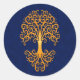 Pegatina Redonda Árbol tribal de vida azul dorado