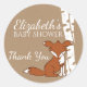 Pegatina Redonda Árboles de Birch Blanco y Baby Shower Fox