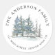 Pegatina Redonda Árboles de pino de bosque acuático devolver etique