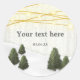Pegatina Redonda Árboles de pino rústicos en la nieve de diciembre