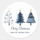 Pegatina Redonda Árboles navideños modernos azules y dorados