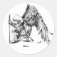 Dibujo original a lápiz de grafito de Sandra Gale de un ángel de arco arrodillado luego de una batalla apocalíptica y apoyado en su espada con la cabeza inclinada. Gran diseño para cualquiera a quien le gusten los ángeles, el arte de fantasía, la religión o un bello dibujo a lápiz.