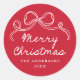Pegatina Redonda Arco Dibujado A Mano Caprichoso Rojo Navidad Feliz