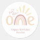 Pegatina Redonda Arcoiris boho y sol primer cumpleaños