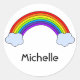 De las nubes de este pegatina emerge un arcoiris con un nombre debajo en letras negras. Personaliza con tu propio nombre u otro texto. Personalizar para cambiar el estilo y el color del tipo de letra.