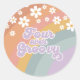 Pegatina Redonda Arcoiris retro de cuatro árboles de siempre Groovy