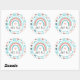 Pegatina Redonda Arcos de lluvia, mariposas y corazones personaliza