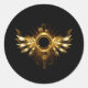 Areas mecánicas brillantes, con engranajes y banner redondo de latón. Steampunk