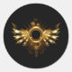 Areas mecánicas brillantes, con engranajes y banner redondo de latón. Steampunk