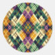 Pegatina Redonda Argyle Mardi Gras verde púrpura amarillo