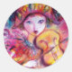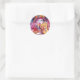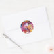 Pegatina Redonda ARLECCHINO Y COLOMBINA, azul amarillo fucsia rosa