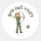 Pegatina Redonda Arquetería femenina de rubia en camuflaje