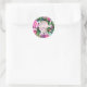 Pegatina Redonda Arreglo de flores rosadas ramo gracias