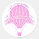 Pegatina Redonda Arriba y lejos, globo de aire caliente rosa ducha