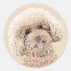 Pegatina Redonda Arroz de juguete en miniatura de perro crema marró