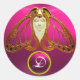 PEGATINA REDONDA ART NOUVEAU MOTH MUJER PINK FUCHSIA GEM MONOGRAM