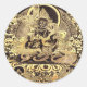 Pegatina Redonda Arte budista tibetano negro y dorado