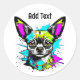 Pegatina Redonda Arte Chihuahua Cyberpunk personalizado
