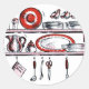 Cocina de campo antigua en blanco y negro con trozos de rojo lleva a una persona de vuelta en el tiempo a los buenos viejos tiempos. La repisa de la cocina de la abuela parecía así: café colgante y té, platos, platos a juego, platos para servir platos, bolas, un cántaro para té helado dulce, utensilios de cocina colgados y su propio libro de cocina personal lleno de recetas. Todo ello sobre estantes de madera pintados de rojo. Este arte vintage es un simple ilustracion blanco y negro con rojo para el puñetazo. Este arte caprichoso es la idea perfecta para muchas vacaciones y ocasiones especiales, como el Día de la Madre, los cumpleaños, los buenos deseos, el pensamiento de ti y más. Chefs, panaderos, cocineros, esposas, madres, todos apreciarán esto.