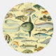 Pegatina Redonda Arte de pesca científica de peces de época