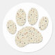 Pegatina Redonda Arte del patrón de huella de papel de perro de Ter