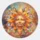 Pegatina Redonda Arte digital de la cara de sol cósmico