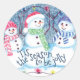 Pegatina Redonda Arte en Acuarela de Hombres de Nieve Divertidos de