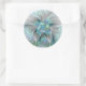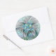 Pegatina Redonda Arte fractal de fantasía de mariposa azul verde ab
