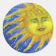 Pegatina Redonda Arte, sol amarillo brillante en cielo azul