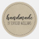 Etiquetar sus productos artesanales con este pegatina "hecho a mano", el toque final perfecto para empaquetar su trabajo duro. La tipografía de estilo manuscrito en un fondo de papel kraft da al diseño un toque natural. Sólo tienes que añadir tu nombre o nombre comercial.