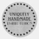 Un pegatina personalizado para mostrar artículos hechos a mano a la venta.