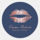 Pegatina Redonda Artista de maquillaje Rosa Oro Lips Salón Azul de