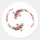Pegatina Redonda Artista de pescado Koi japonés negro y rojo