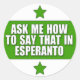 Muestre su facilidad en la lengua internacional con este diseño ingenioso. El steloj del verdaj añade un tacto agradable. Pregúnteme cómo decir eso en esperanto.