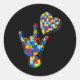 Pegatina Redonda ASL Love Rótulo Lenguaje Autismo Awareness Puzzle