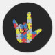 Pegatina Redonda ASL Rótulo de amor Lenguaje de autismo Ayuda para