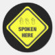 Una de las colecciones de productos con ASL (American Rótulo Language). Diamantes amarillos bordeados de negro. El cartel de "ASL" y "Spoken Here"